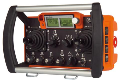 Передатчик spectrum B. Данная система радиоуправления используется при работе со строительными и промышленными кранами, оборудованием для переработки металлолома, коммунальной спецтехникой и т.д.